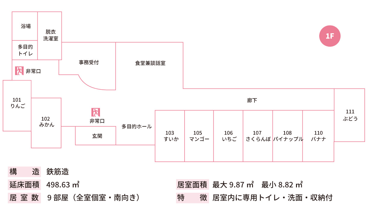 | 居室数 | 9部屋(全室個室・南向き) |