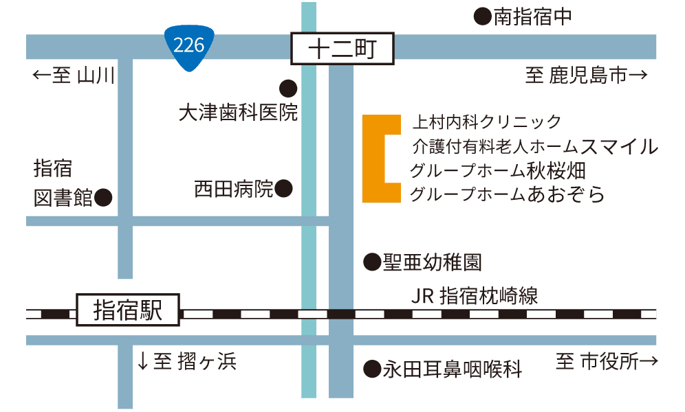 温暖な気候に恵まれた指宿市街地のほぼ中心部にあり、街との出会いが容易にできる環境にあります。