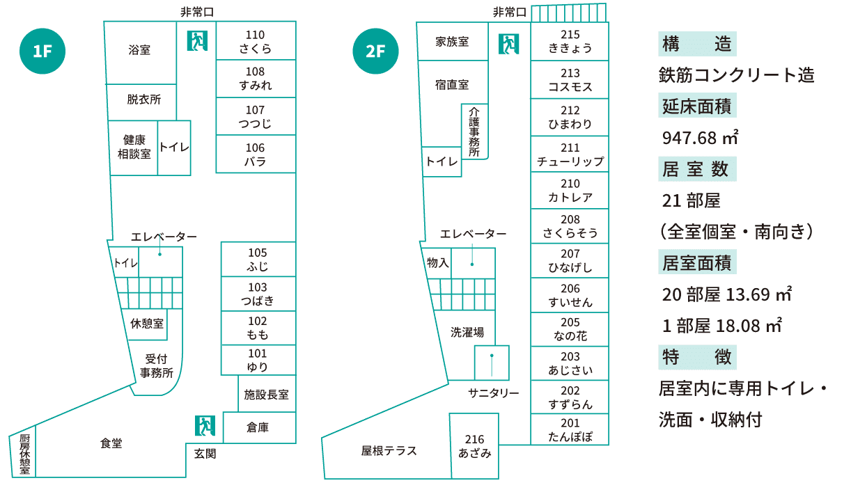 | 居室数 | 21部屋(全室個室・南向き) |
